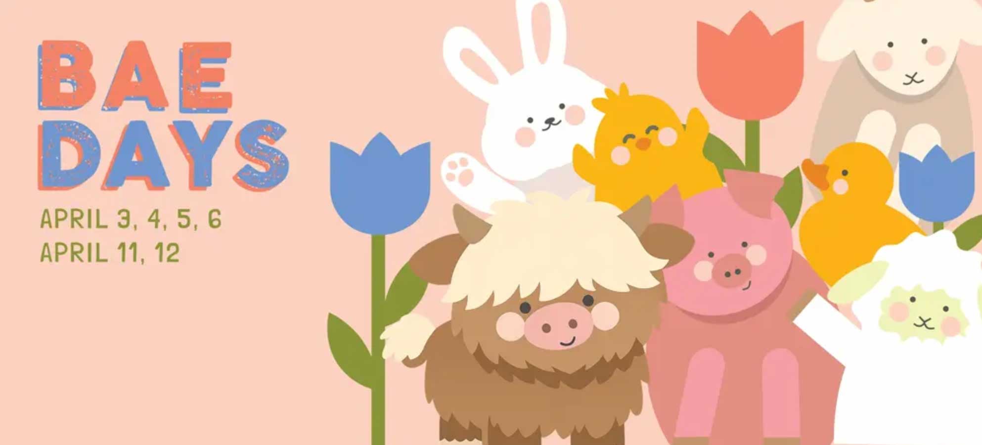 Running on March 27–29, April 3–6, and April 11–12, 2026, BAE Days invites families to enjoy a full day of hands-on farm fun, seasonal blooms, and festive Easter experiences.