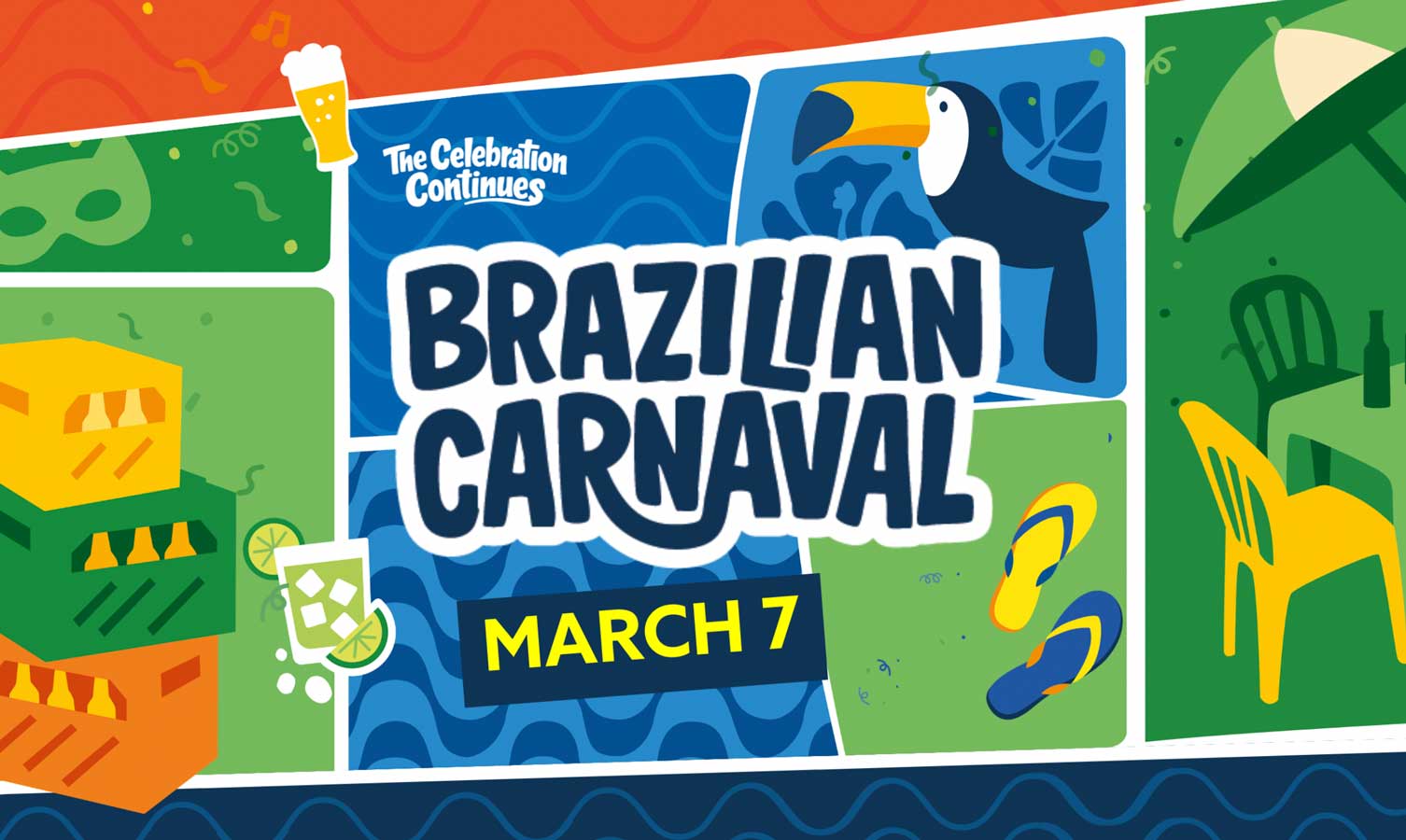 All-day indoor, multi-zone Brazilian Carnaval experience