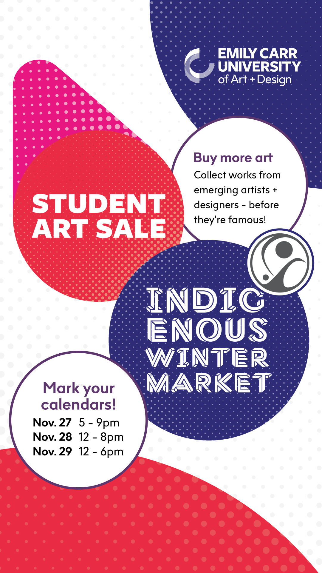 • The Emily Carr University Student Art Sale 2025 returns this November, showcasing more than 250 talented emerging artists from one of Canada’s top art and design universities. This annual event transforms the ECU campus into a vibrant marketplace filled with creativity, craftsmanship, and one-of-a-kind works — the perfect place to find meaningful gifts or add distinctive pieces to your collection.