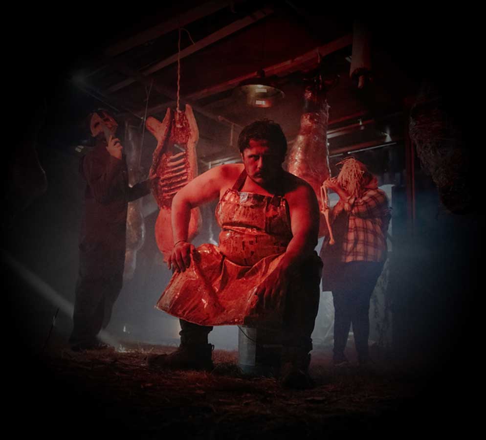 The Butcher is waiting. Once the doors slam shut, you are no longer a guest — you’re livestock. Herded through chambers dripping in steel and blood, you’ll fight to survive the claustrophobic maze of blades, screams, and fear.