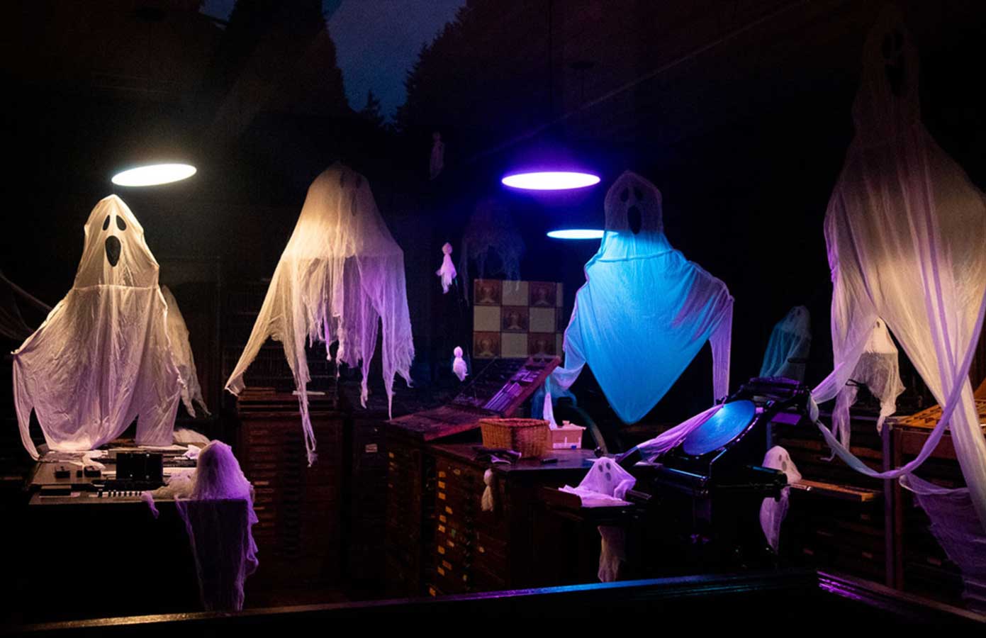 The event uses dramatic lighting effects but no strobe lights, ensuring accessibility for guests with light sensitivities.