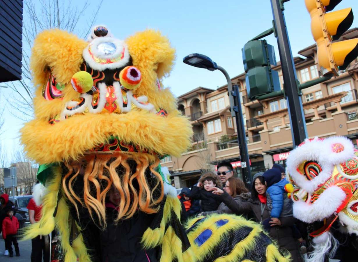 The lion dance procession will begin at the Heights Fountain Square at 11:00 AM, travelling along Hastings Street toward Boundary Road and then east toward Gamma Avenue, visiting participating merchants along the route.