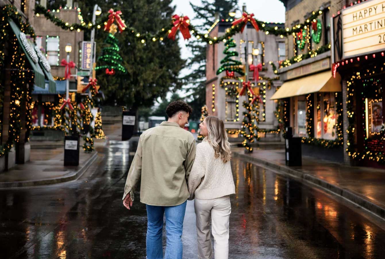 With expertly crafted sets, cinematic lighting, window displays, and themed vignettes, Martini Town is filled with picturesque backdrops perfect for holiday photography. Many guests choose to dress up in festive or vintage-inspired outfits to match the movie-style environment.