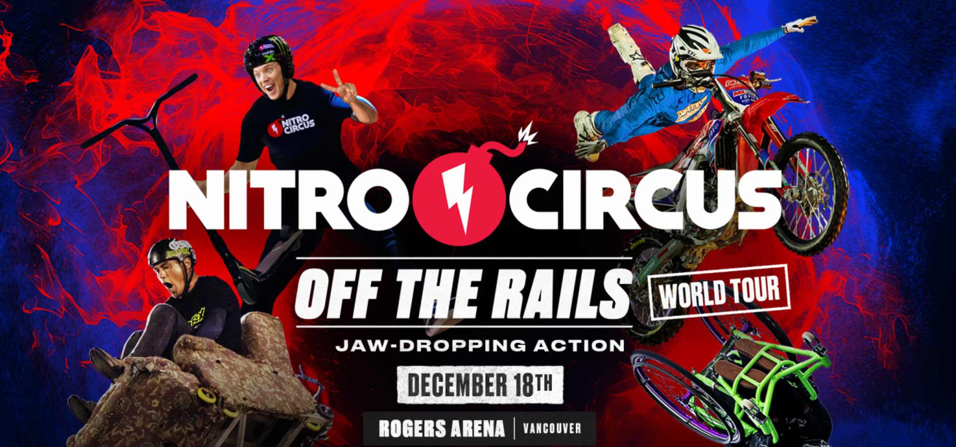 Get ready for one of the most adrenaline-packed live action sports events of the year as Nitro Circus: Off the Rails Tour 2025 roars into Rogers Arena for one night only. Featuring jaw-dropping stunts, world-class athletes, and nonstop energy, this electrifying live show pushes the limits of what’s possible on wheels—and in the air.