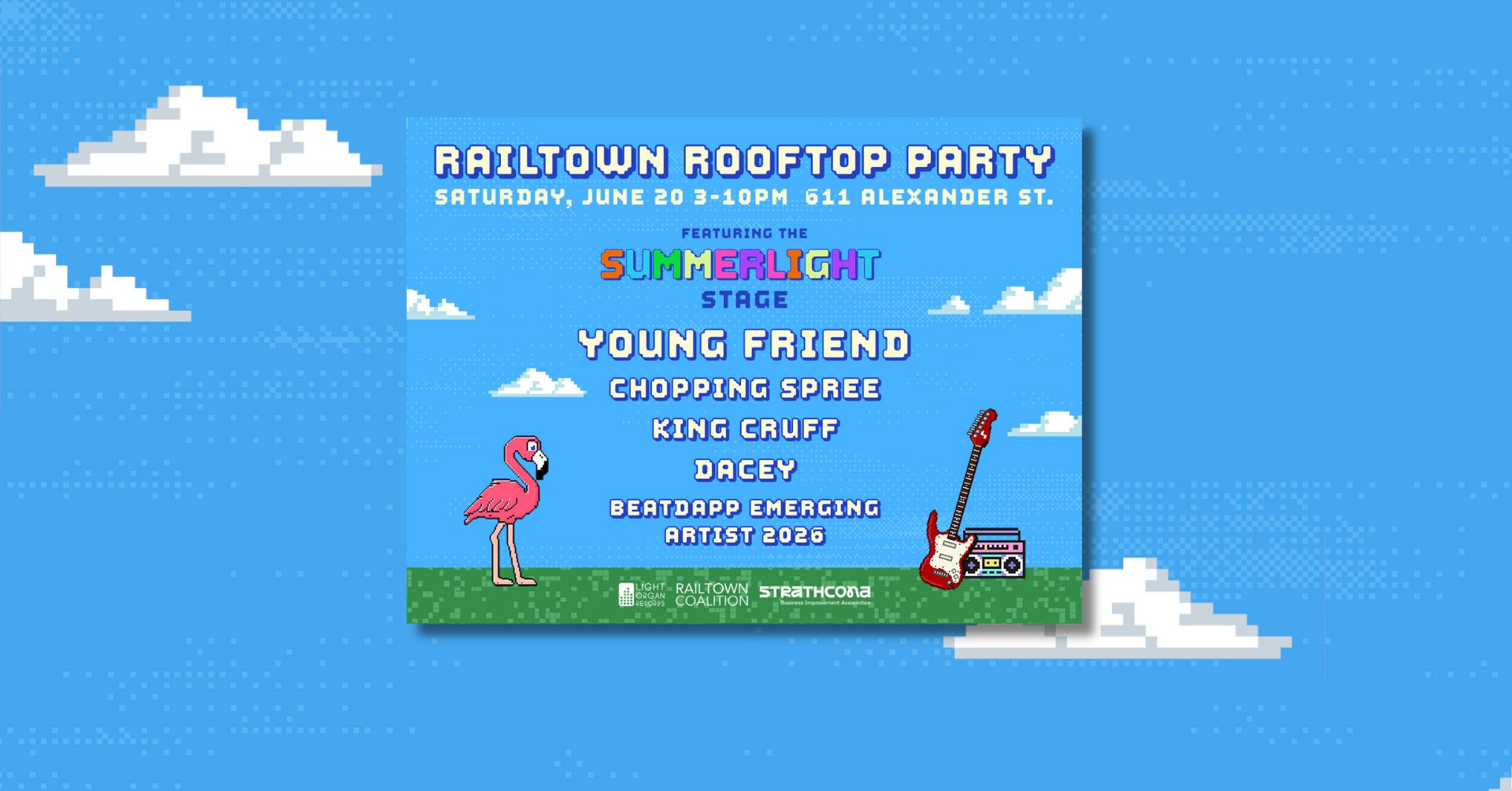 Railtown Rooftop Party featuring The Summerlight Stage returns on Saturday, June 20th for another FREE day of live music, art, food, and community in the heart of Vancouver’s Railtown district.