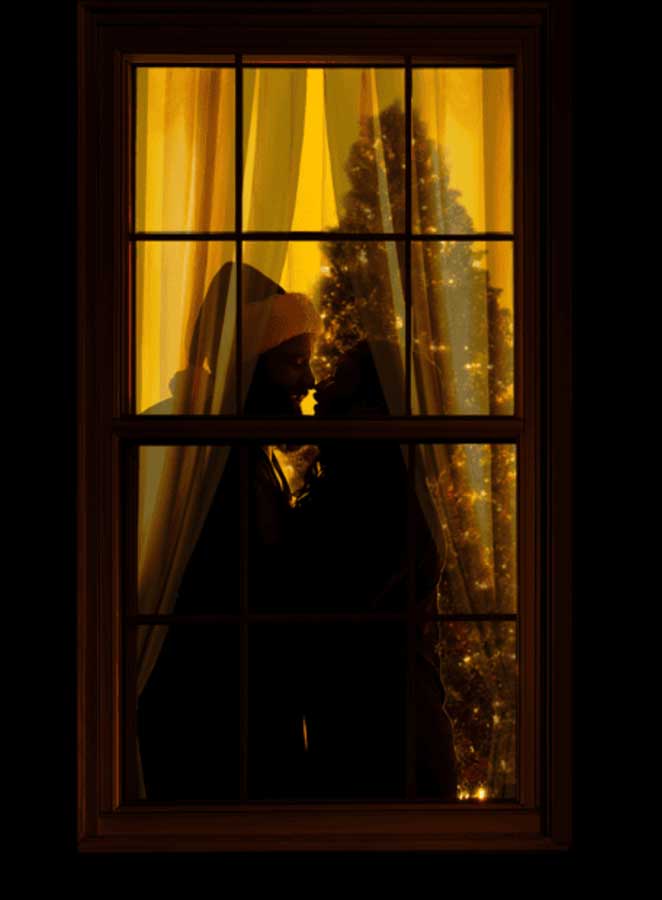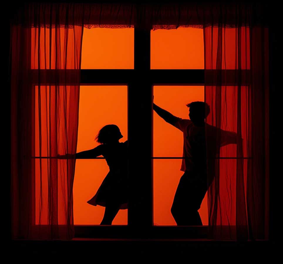 Dozens of illuminated windows create a dynamic visual pathway — silhouettes cooking, dancing, playing music, reading, resting, dreaming. Every silhouette flickers like a short film, encouraging visitors to pause and look closer.