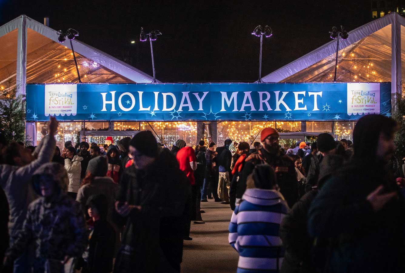 Enjoy free ice skating all weekend long inside the Holiday Market & Rink Tent.