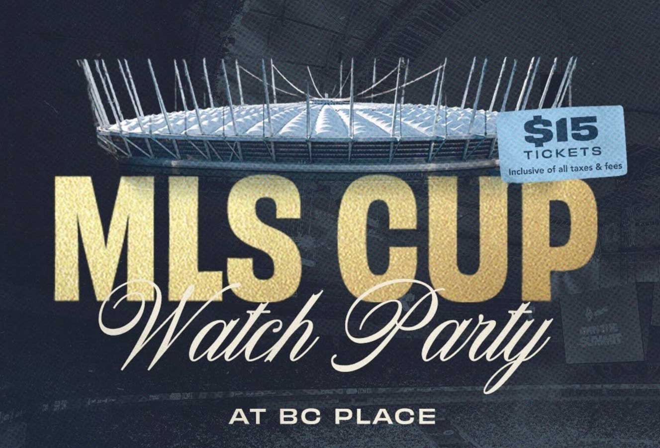 This special MLS Cup Watch Party allows fans to gather inside BC Place and experience the match together on giant screens — complete with stadium sound, fan zones, team merchandise, and the unmatched atmosphere of cheering from the stands.