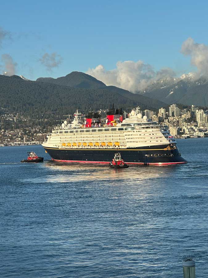 Each location offers a different perspective of the ships against Vancouver’s skyline and natural surroundings.