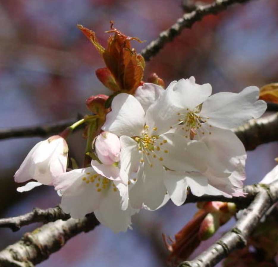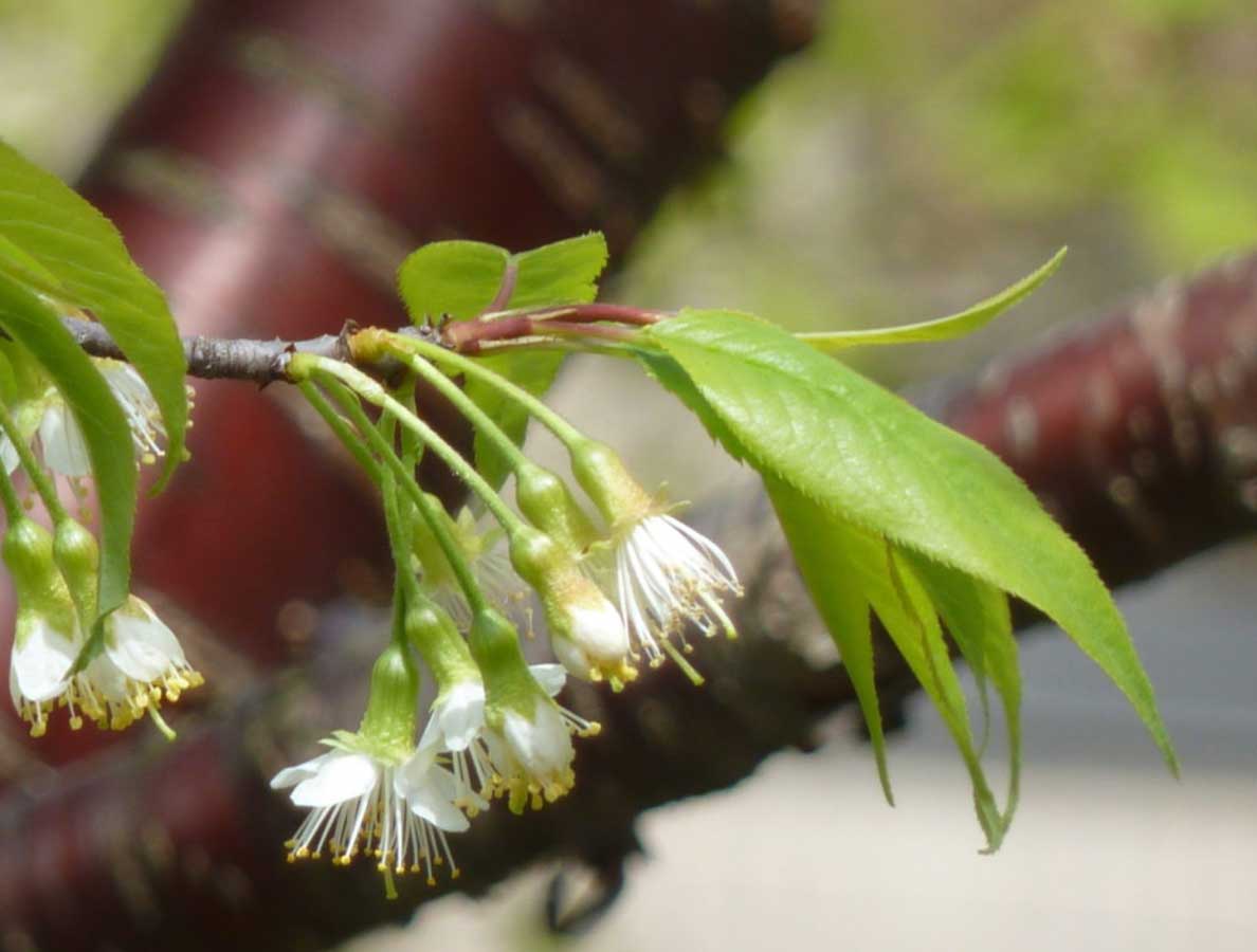 A parent species of many hybrids, known for its fragrant white flowers and fresh green leaves. It plays a key role in the genetics of many ornamental cherries.