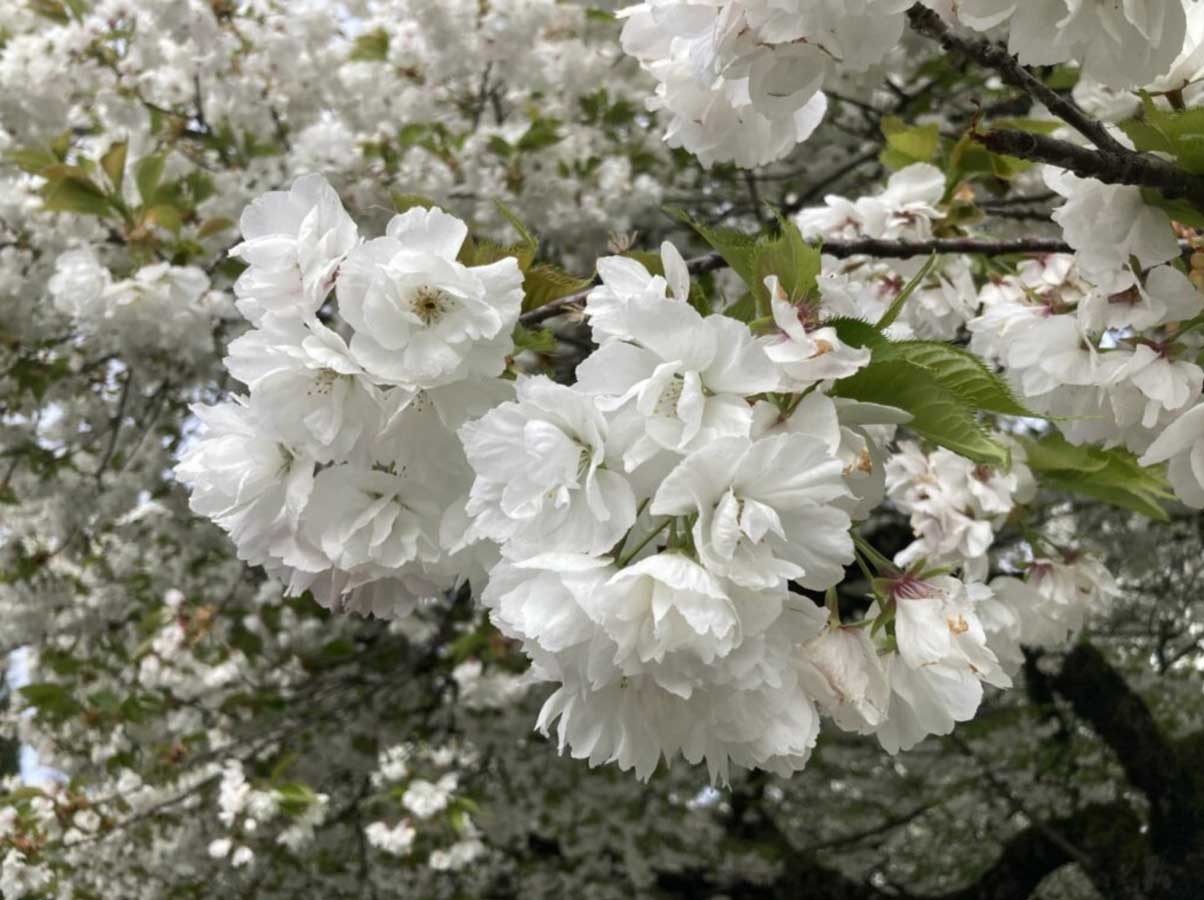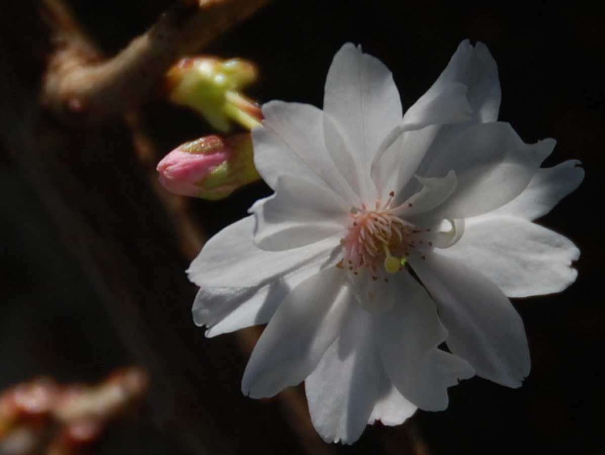 Known for its large, flat white blossoms, Shirotae offers a clean, elegant contrast to pink varieties. Its wide, spreading branches give it a graceful silhouette.
