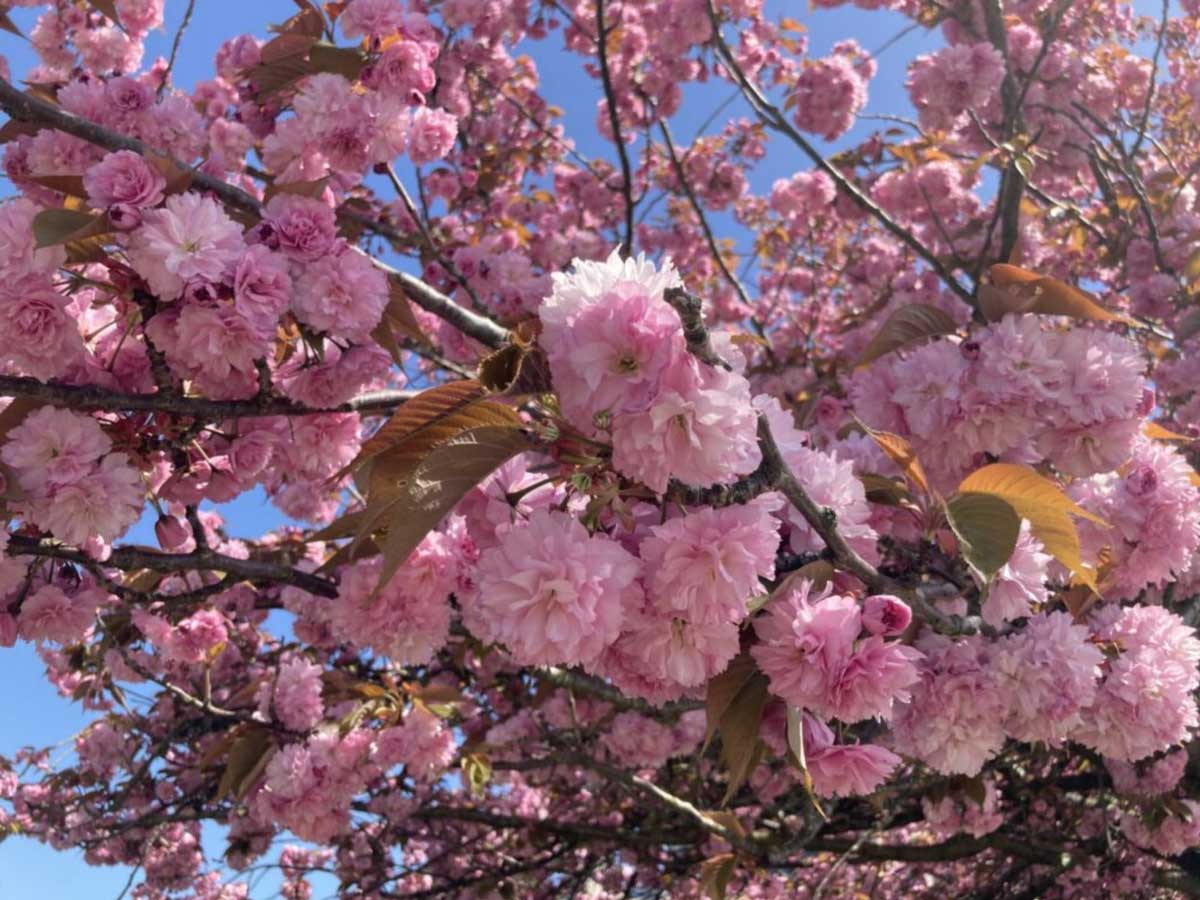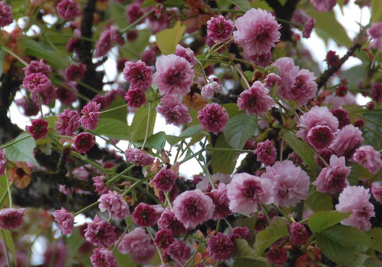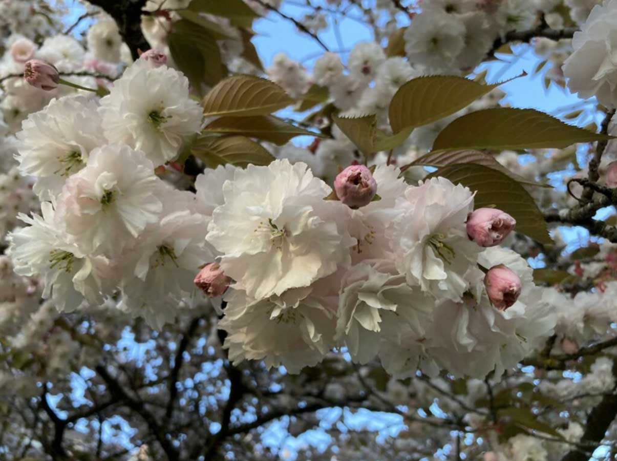 One of the most striking cherry trees, Kanzan features dense clusters of double, deep pink flowers. Blooming later in April, it creates a bold and vibrant display, often seen in parks and boulevards.