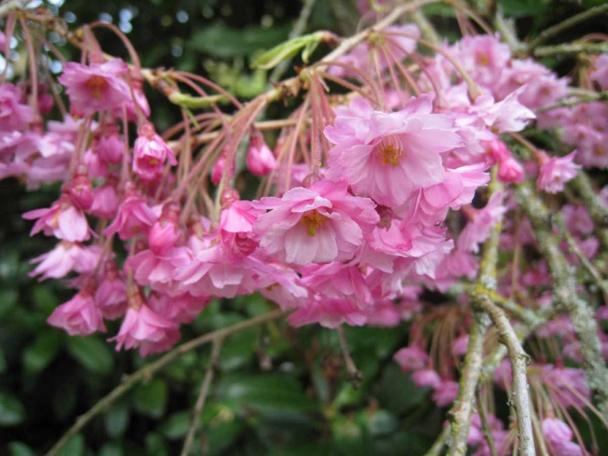 Known for their dramatic drooping forms and dense blossoms, these trees combine the beauty of weeping structure with richly layered petals.